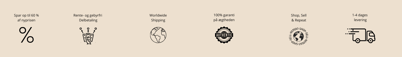 Hos Reluxe forhandler vi kun originale designervarer og vi autentificerer omhyggeligt hver brugt designertaske i samarbejde med internationale eksperter, for at give dig en pålidelig luksus shoppingoplevelse. Fordi tillid er kernen i Reluxe inkluderer dit køb et unikt ægthedscertifikat, som giver dig 100% garanti på ægtheden.